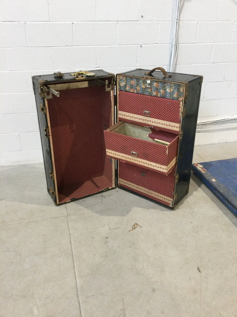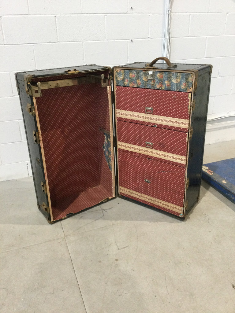 - Type de matière : Malle de voyage antique assez usée. Très solide. Loquet brisé.