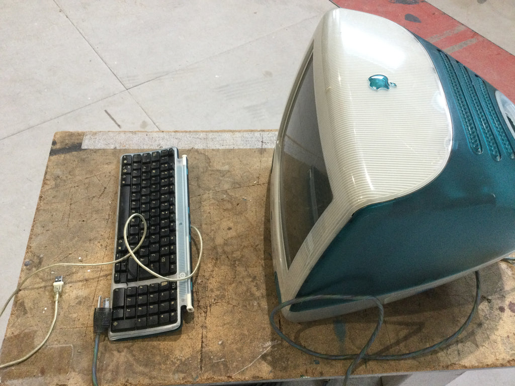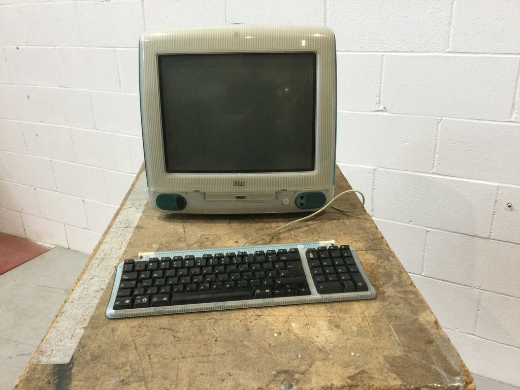 - Type de matière : Imac de la compagnie Apple avec clavier et souris. Modèle de 1998. Manuel d'instruction et CD d'installation disponibles.