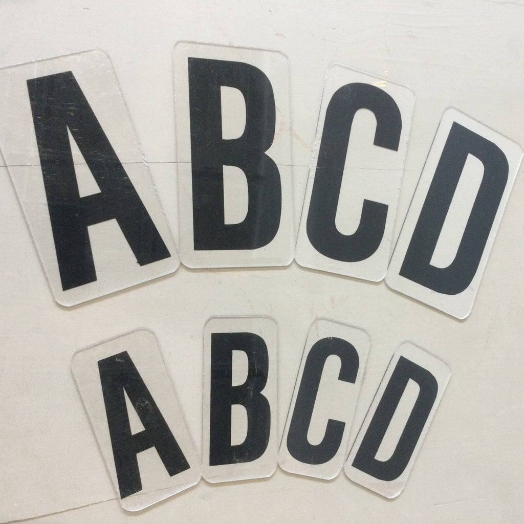 - Spécificités : Lettres de A à Z et chiffres de 1 à 9. Deux lots de tailles différentes. Les lettres sont légèrement abimées à certains endroits.