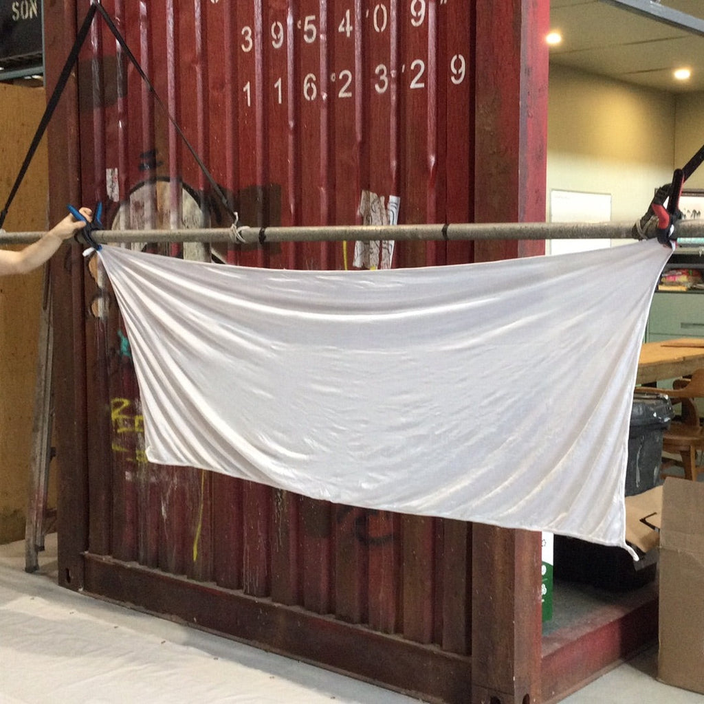 - Spécificités : Système d'attache avec œillet à chaque coin. Certains morceaux ont des petites taches.