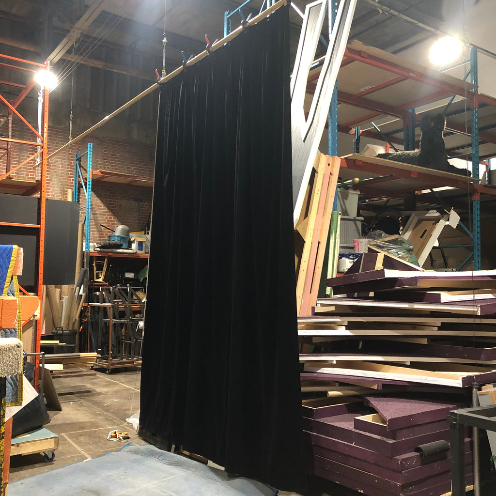- Spécificités : Grand rideau (#03) en très bonne condition en velours noir épais et opaque.