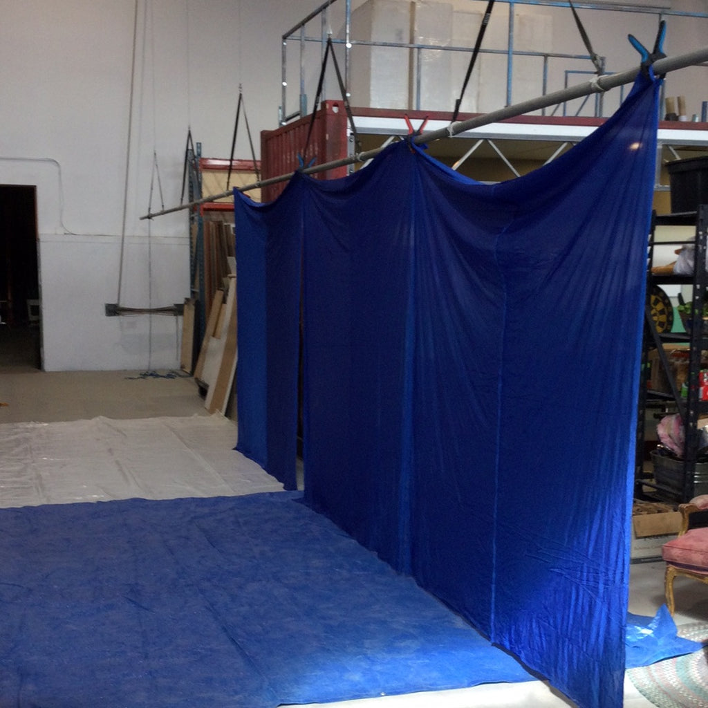 - Spécificités : Une couture verticale au milieu de chaque rideau. Il y a un trou dans le bas d'un des rideaux.