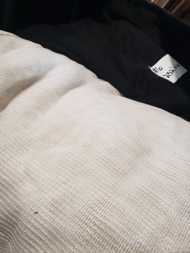 Variétés de tulle scénique : plusieurs dimensions et couleurs disponibles. Certains morceaux comportent des bandes de velcro.