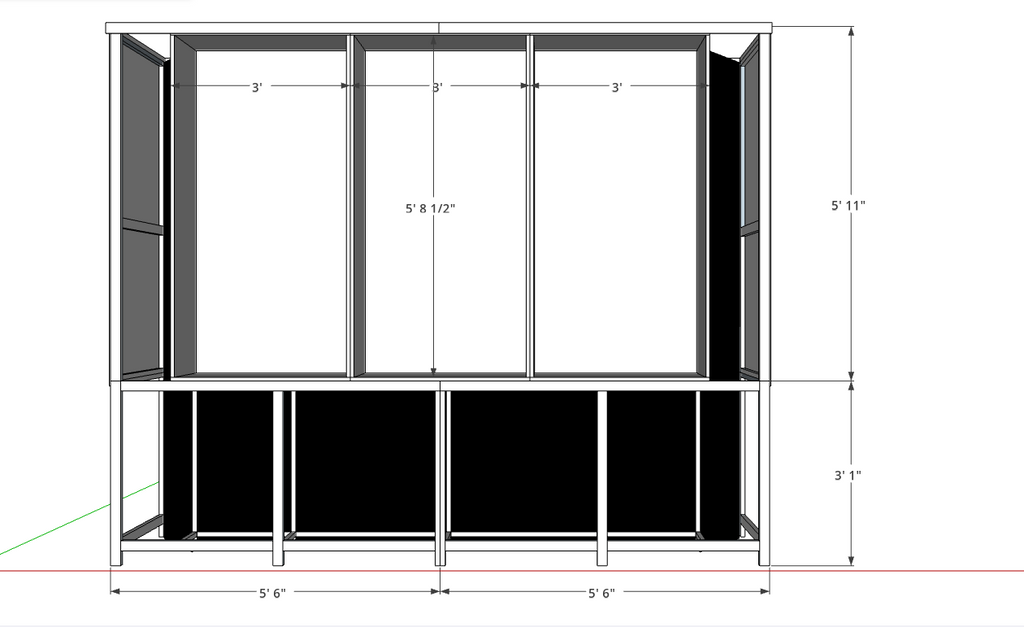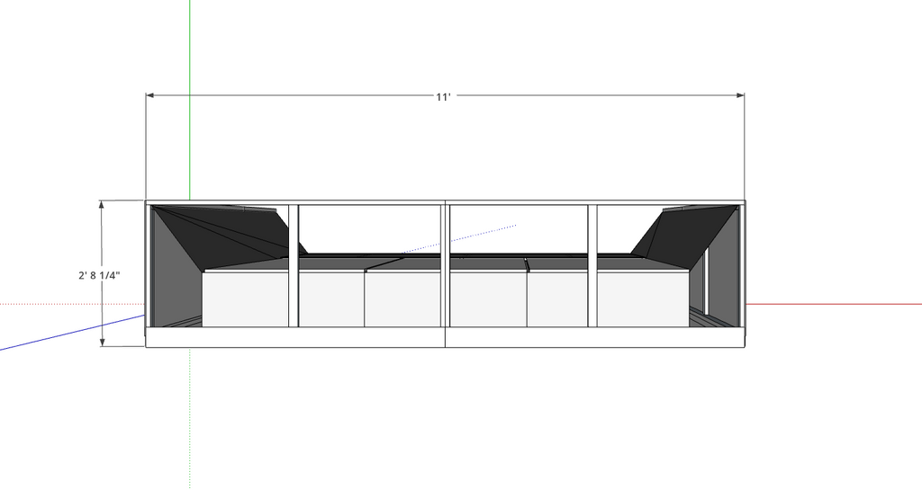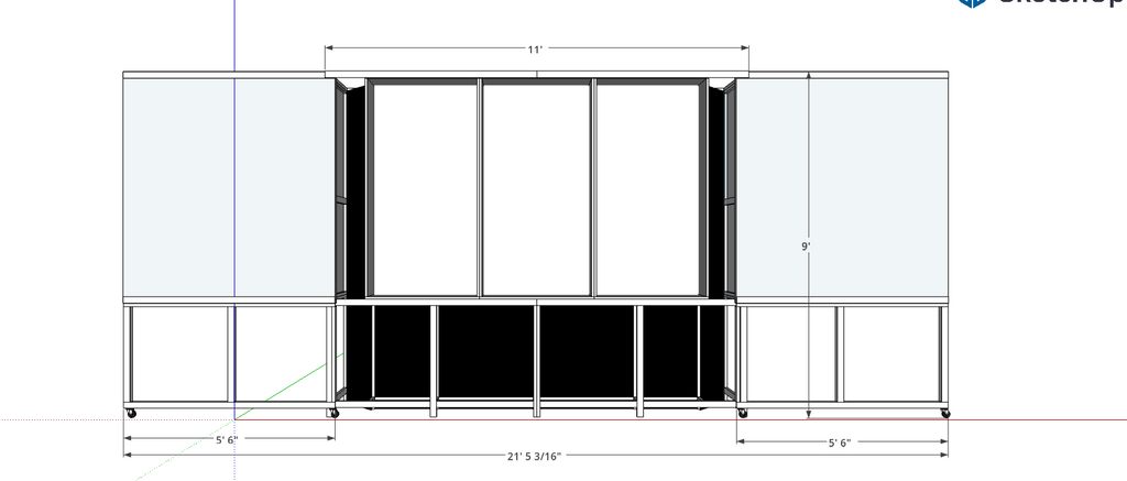 - Dimensions totales de la structure (H x L x P) : 9' x 21' 5 3/16" x 2' 8 1/4". Voir les photos pour plus de précisions.
