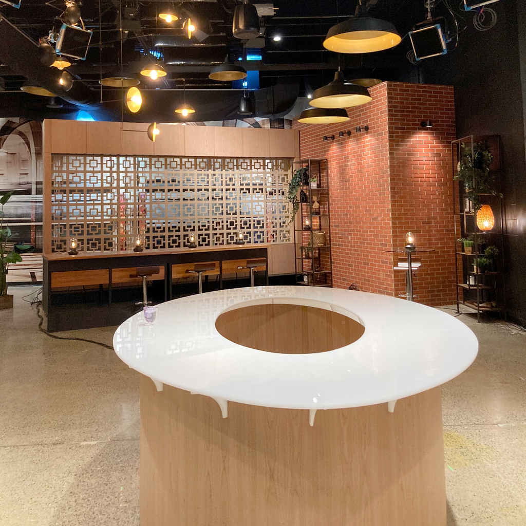 - Spécificités : Dessus de la table en plexiglass semi-transparent. Structure en deux morceaux déjà prête à être transportée. Système de LED intégré.