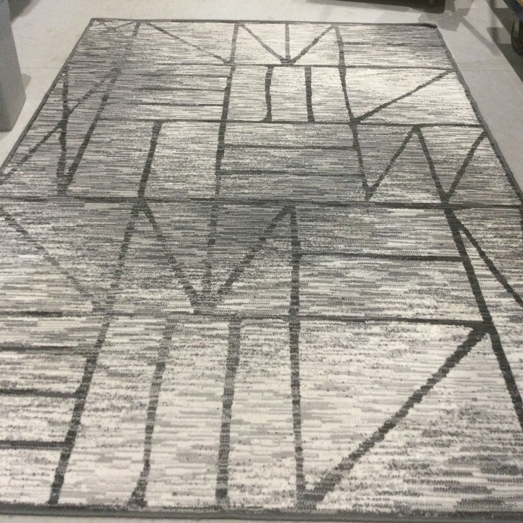 - Spécificités : Tapis à poil court. Motif de triangles et de rectangles.