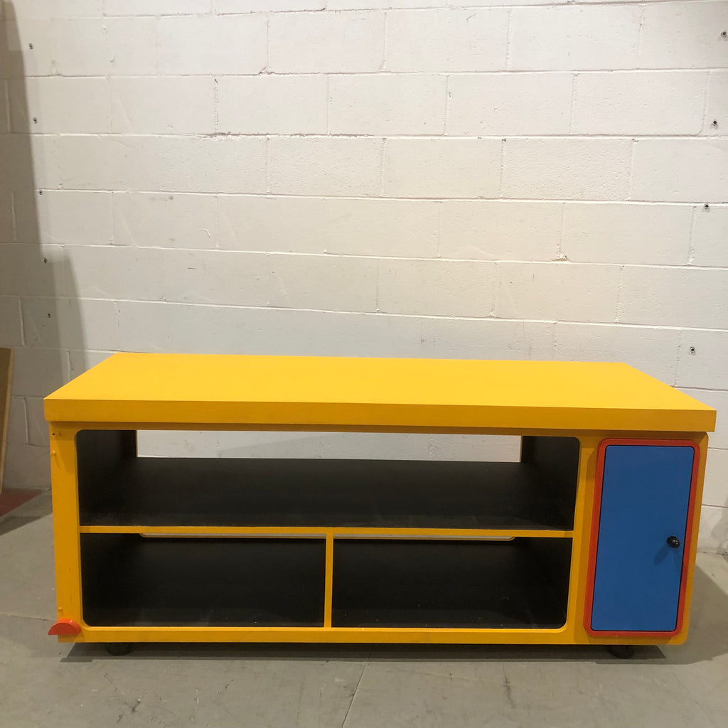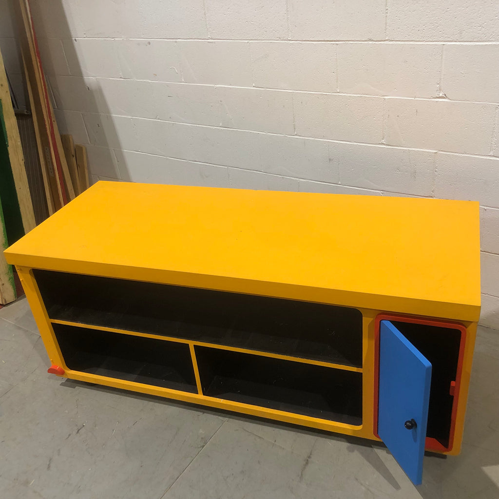 - Spécificités : Console sur pattes aux couleurs vives. Le meuble est conçu pour être utilisé comme un praticable.