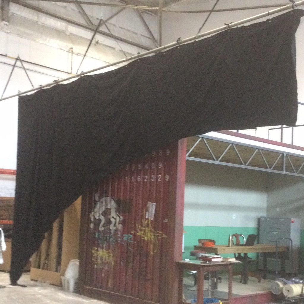 - Spécificités : Les rideaux ont été découpés en oblique sur la largeur. Le découpage n'a pas de finition. Peuvent servir tel quel pour des besoins de mise en scène spécifiques ou comme textile à retravailler.