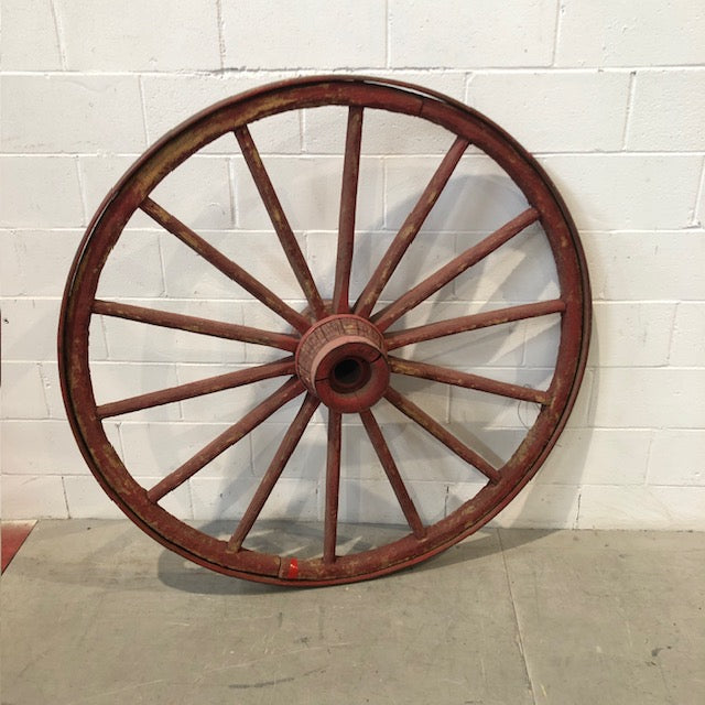 - Spécificités : Grandes roues de charrette en bois peintes en rouge. 2 roues disponibles.